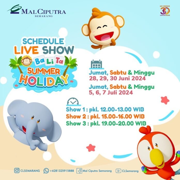Mal Ciputra Semarang akan menggelar acara bertajuk BaLiTa Summer Holiday yang dimulai Kamis (20/6/2024).