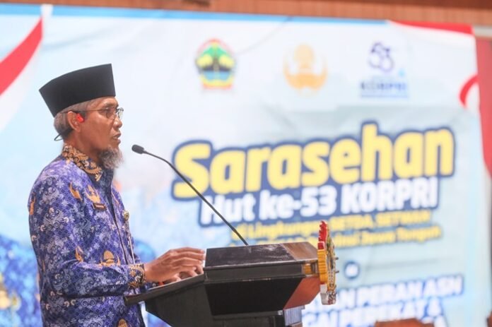 “Siapapun yang menjadi pemimpin kita, itulah yang nantinya akan masuk dalam lingkup pemerintahan. Dan harus kita dukung program-programnya,” ujar Sumarno saat membuka sarasehan HUT ke-53 Korps Pegawai Republik Indonesia (Korpri) di Gedung Gradhika Bhakti Praja Semarang pada Senin (2/12/2024).