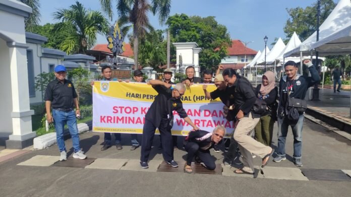 Kendal, Jatengnews.id – Forum Wartawan Kendal (Forwaken Kendal) menggelar aksi damai di Alun-Alun Kendal, Jumat (14/2/2025).