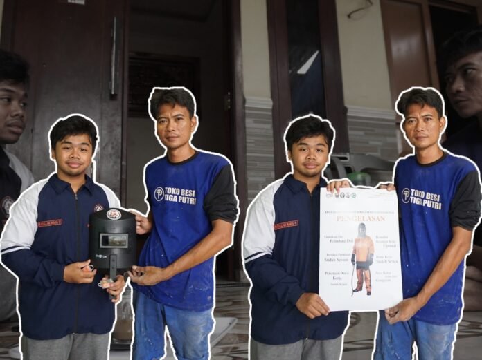 Mahasiswa KKN UNDIP menggelar workshop yang membahas risiko kecelakaan kerja, teknik kerja aman saat mengelas, serta demonstrasi penggunaan APD seperti penutup telinga dan topeng pelindung las.