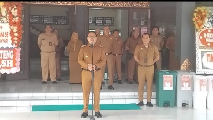 Adhe Eliana memimpin apel pagi, mewakili Bupati Karanganyar yang saat ini mengikuti orientasi kepemimpinan (retret) di Akmil Magelang.