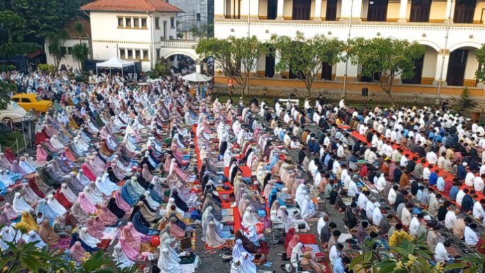 Samarang, Jatengnews.id – Ribuan warga mengikuti salat ied di Lawang Sewu Semarang, pada Senin (31/3/2025) pagi.