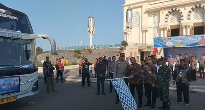 Sebanyak enam armada bus diberangkatkan dari halaman Masjid Agung Madaniyah, dan dilepas langsung oleh Bupati Karanganyar Rober Christanto, Wakil Bupati Adhe Eliana serta Kapolres AKBP Hadi Kristanto, Selasa (8/4/2025).
