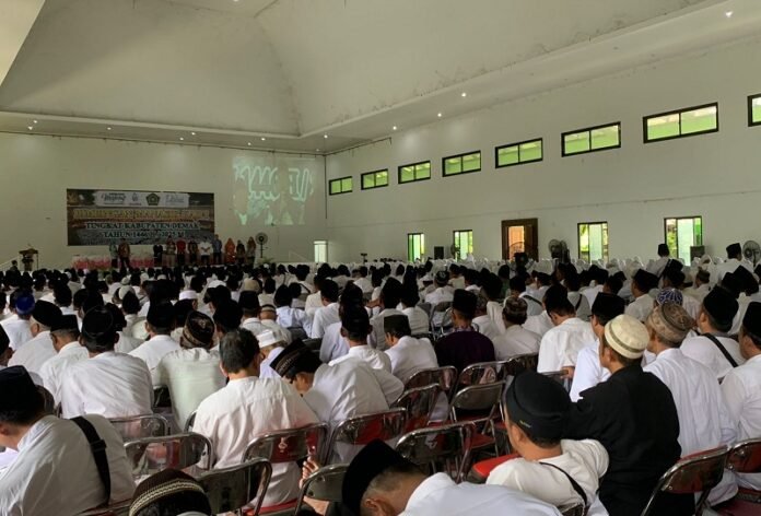 Sebagai informasi, ribuan calon jamaah haji dari Kabupaten Demak mengikuti bimbingan manasik haji tingkat kabupaten tahap pertama yang diselenggarakan oleh Pemerintah Kabupaten (Pemkab) Demak bekerja sama dengan Kementerian Agama (Kemenag), berlangsung di Aula Gedung Ikatan Persaudaraan Haji Indonesia (IPHI) Demak, Rabu (9/4/2025). (Sam-01).