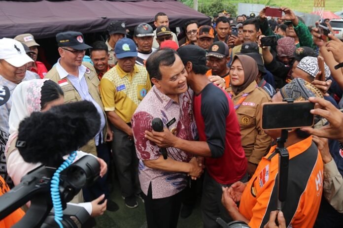 “Saya berharap kepada pemerintah supaya kami di sini dapat hunian lebih layak. Saya mewakili masyarakat yang terdampak tanah bergerak di sini hanya ingin semoga pemerintah dapat memberikan apa yang kami harapkan sekarang,” ujarnya yang langsung disambut pelukan dari Ahmad Luthfi.