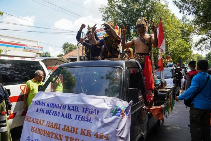 Tegal, Jatengnews.id –  Prosesi Kirab Pusaka, Parade Ageng Hasil Bumi warnai Hari Jadi ke-424 Kabupaten Tegal, Sabtu (17/05/2025).
