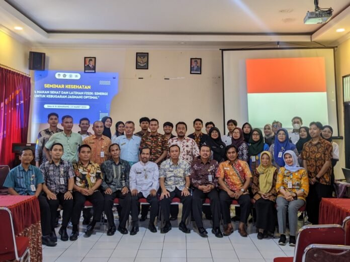 Semarang, JatengNews.id– Mahasiswa Pendidikan Profesi Guru (PPG) Universitas PGRI Semarang (UPGRIS) Program Studi Pendidikan Jasmani Kesehatan dan Rekreasi (PJKR) gelar seminar bertajuk “Pola Makan dan Latihan Fisik: Sinergi untuk Kebugaran Jasmani Optimal”, yang berlangsung di SMA Negeri 10 Semarang pada Jumat (21/3/2025).