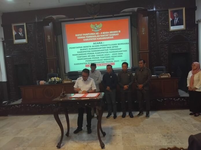 Dua Raperda yang disepakati untuk disahkan tersebut, Raperda tentang Rencana Pembangunan Jangka Menengah Daerah (RPJMD) Kabupaten Karanganyar Tahun 2025–2029 dan Raperda tentang Rencana Pembangunan Industri Kabupaten Karanganyar Tahun 2025–2045.