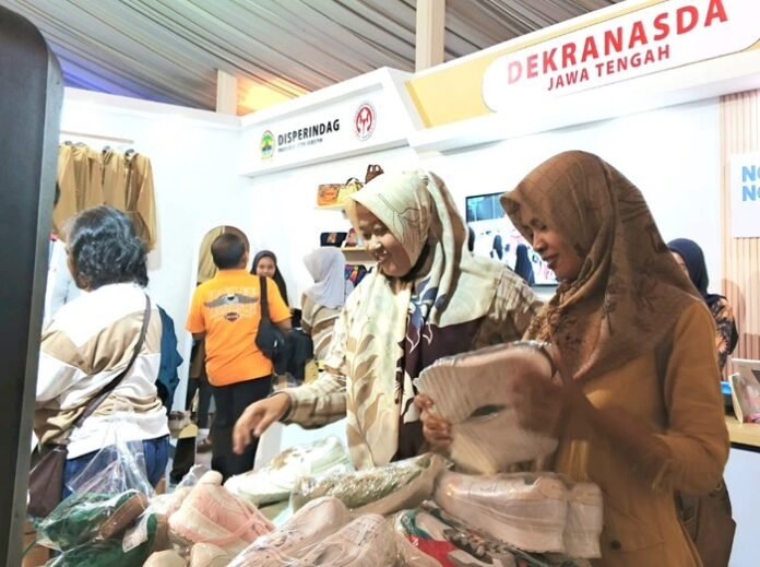 Stan Dinas Perdagangan dan Perindustrian (Disperindag) Jawa Tengah serta Dewan Kerajinan Nasional Daerah (Dekranasda) menghadirkan beragam produk fesyen, seperti sepatu merek Aerostreet, kaos, jaket, dan tas.