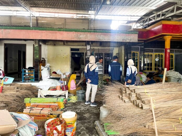 Mahasiswa KKN UIN Walisongo menyaksikan proses produksi berbagai jenis sapu, seperti sapu taman, sapu lidi, dan sapu rumah.