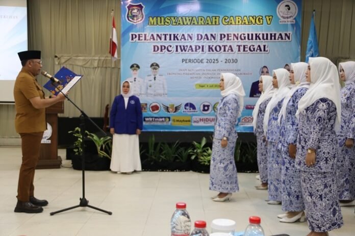 Pengukuhan dilakukan oleh Wali Kota Tegal, Dedy Yon Supriyono, usai pelantikan oleh Ketua DPD IWAPI Jateng, Ning Wahyu, di Hotel Premiere, Selasa (8/7/2025).
