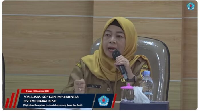 Sebagai bagian dari implementasi sistem Dijabat Besti, BKPSDMD Kabupaten Brebes telah melaksanakan sosialisasi standar operasional prosedur (SOP) kepada seluruh perangkat daerah. Kegiatan ini bertujuan untuk memastikan seluruh ASN, khususnya pejabat fungsional, memahami mekanisme baru ini dan dapat menggunakannya secara optimal.