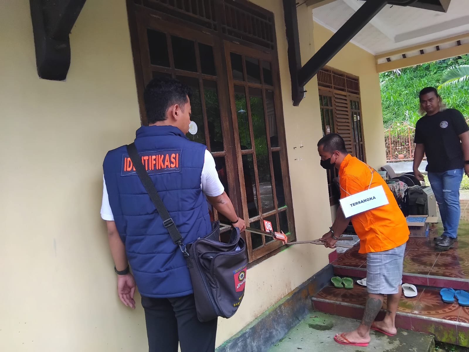 Rekonstruksi dimulai dari kedatangan tersangka dengan menggunakan sepeda motor dan parkir tidak jauh dari rumah korban.