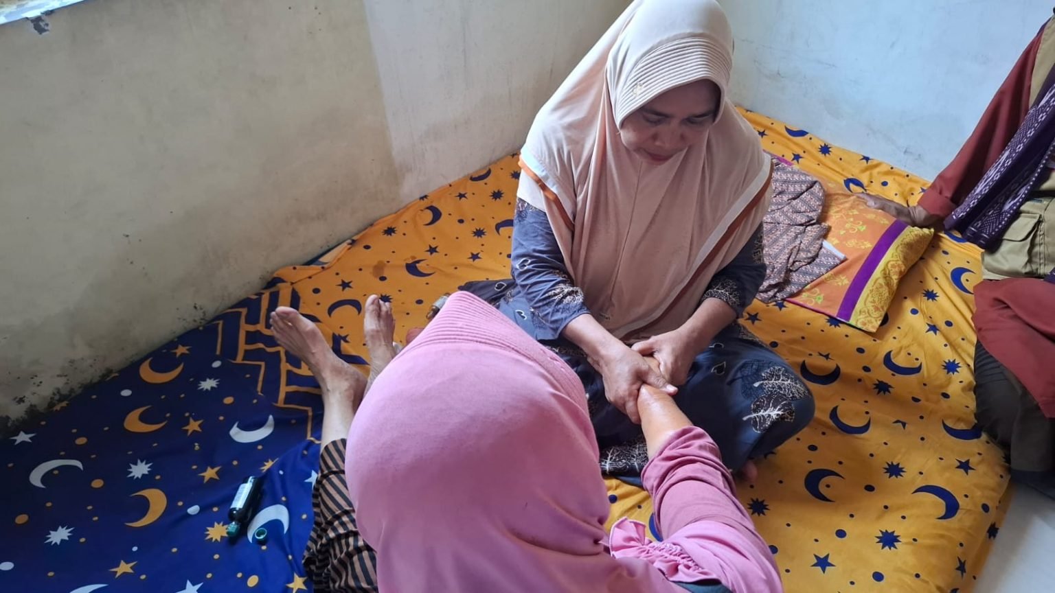 Seorang penyehat tradisional di Demak tengah memberikan pelayanan pijat. (Foto : Sam)