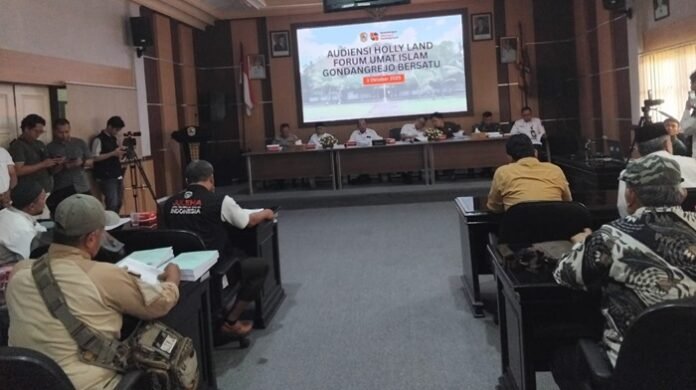 Dalam audiensi bersama Forum Umat Islam Bersatu Kecamatan Gondangrejo, Jumat (3/10/2025), Rober menegaskan bahwa penerbitan Surat Keputusan (SK) penundaan pembangunan Holy Land telah melalui kajian berbagai pihak.