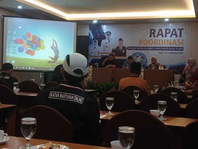 SOLO, Jatengnews.id – Pemerintah Kota (Pemkot) Tegal menggelar Rapat Koordinasi (Rakor) Sinergisitas bersama 42 wartawan peliputan wilayah Kota Tegal di Hotel Megaland, Solo, Jumat (10/10/2025).