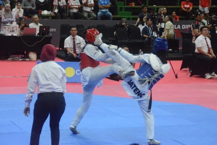 KUDUS, Jatengnews.id – Taekwondoin Jawa Tengah kembali memberikan medali emas di PON Bela Diri 2025 di GOR Djarum Arena Kaliputu Kudus Senin (13/10/2025).