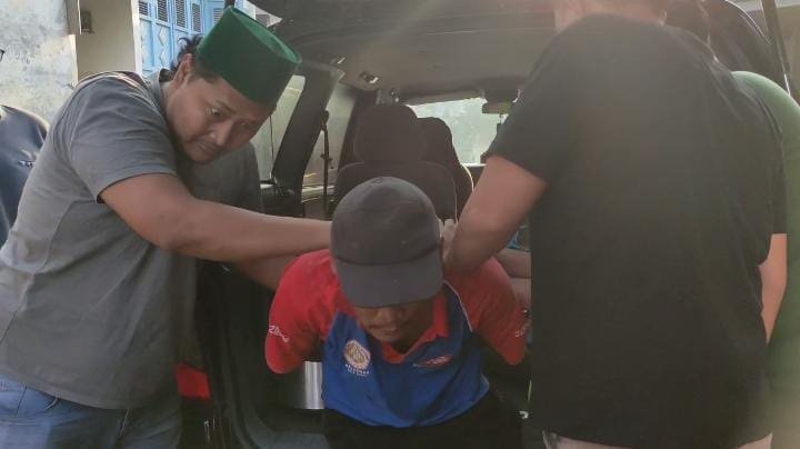 Pelaku saat diamankan pihak berwajib.(Foto:ist)