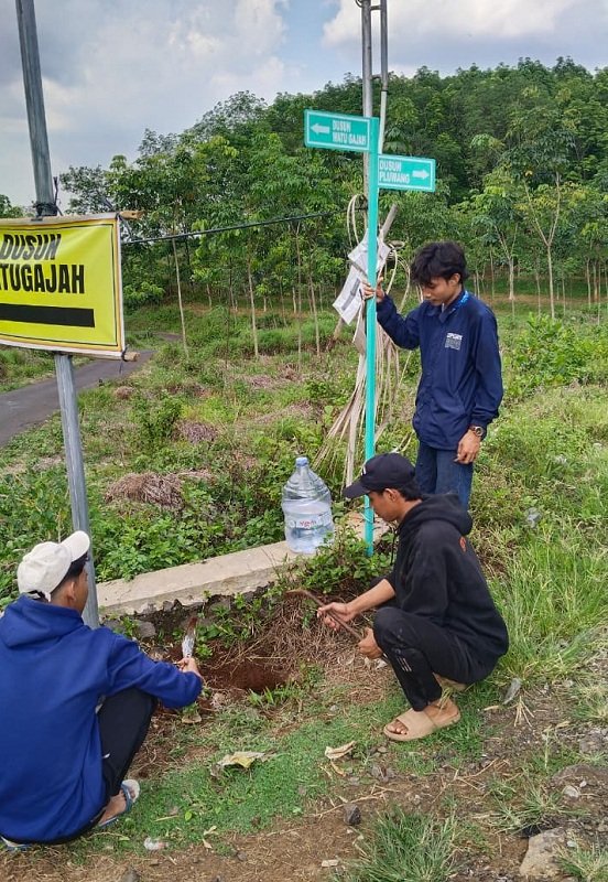 Salah satu fokus utama kegiatan KKN Kelompok 33 UPGRIS adalah pembuatan plang jalan di titik-titik strategis Desa Wringinputih. Lima plang tersebut dipasang di: