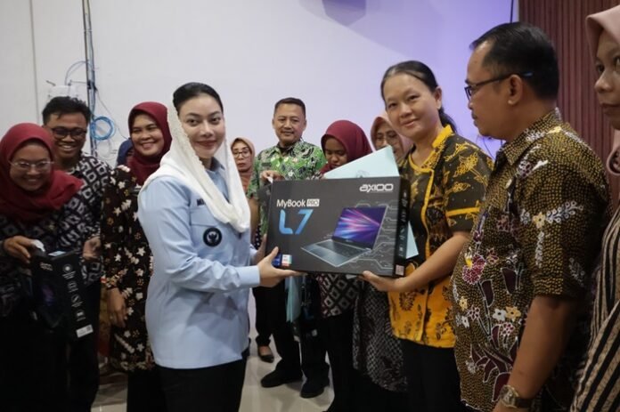 BREBES, Jatengnews.id – Bupati Brebes Paramitha Widya Kusuma SE MM menyerahkan bantuan transport bagi kader kesehatan dan laptop untuk 11 Puskesmas, Kamis (23/10/2025).