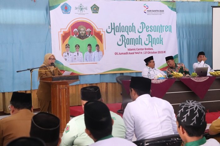 Hal itu disampaikan Bupati Brebes Hj Paramitha Widya Kusuma SE MM melalui Kepala Dindikpora Caridah saat membuka Halaqah Pesantren Ramah Anak rangkaian Hari Santri Nasional PCNU Brebes di Aula Islamic Center, Senin (27/10/2025).