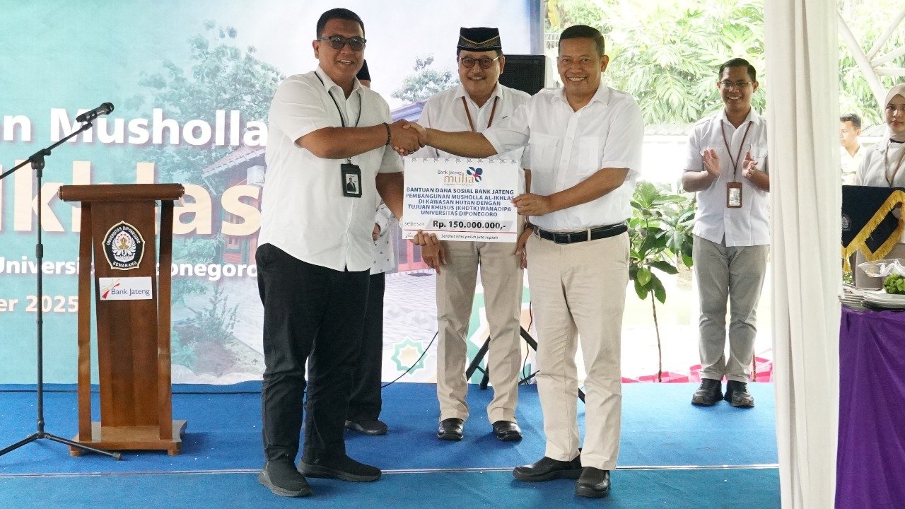 Adapun, Bank Jateng menyalurkan bantuan senilai Rp150 juta untuk pembangunan Mushola Al-Ikhlas di Kawasan Hutan Dengan Tujuan Khusus (KHDTK) Wanadipa Universitas Diponegoro (Undip) Penggaron, Kabupaten Semarang.