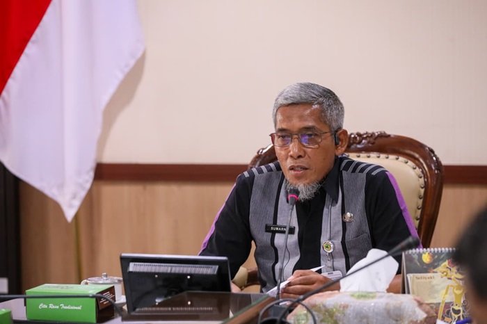 Sekretaris Daerah Jateng, Sumarno, mewakili Gubernur Ahmad Luthfi dalam presentasi daring di Kantor Gubernur, Selasa (4/11/2025).