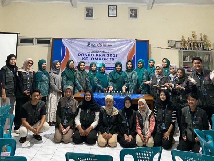 Kendal, JatengNews — Mahasiswa Kuliah Kerja Nyata (KKN) Posko 15 UIN Walisongo Semarang menggelar kegiatan sosialisasi dan praktik pembuatan sabun cuci piring alami berbahan daun jeruk dan serai.