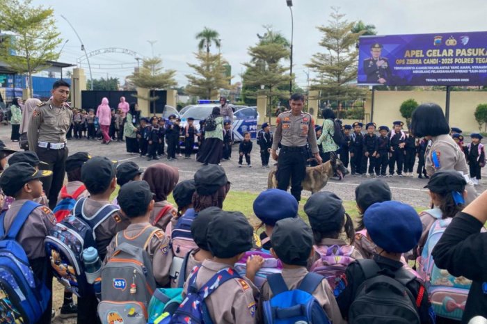 TEGAL, Jatengnews.id – Puluhan siswa TK Kemala Bhayangkari 25 Tegal mengikuti edukasi tertib berlalu lintas di Mapolres Tegal Kota, Kamis (20/11/2025).