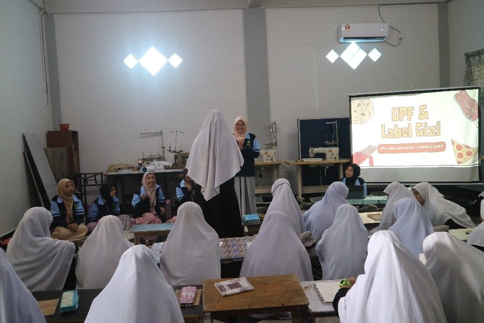 Dalam kegiatan tersebut, mahasiswa menyampaikan materi mengenai bahaya ultra-processed food (UPF), ciri dan jenis junk food, kandungan berisiko dalam makanan kemasan, serta dampaknya bagi kesehatan.