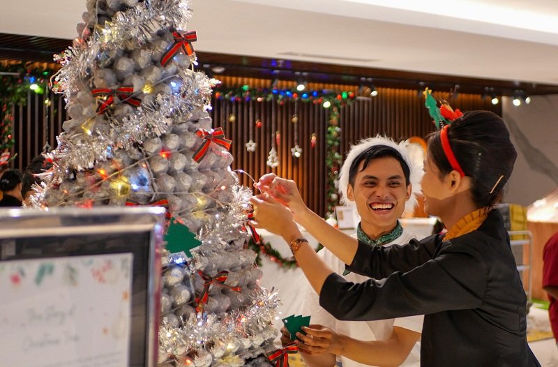 Menyambut Desember, hotel menghadirkan dekorasi bernuansa Natal yang hangat dan meriah, lengkap dengan Santa Claus, Gingerbread Man, hingga instalasi pohon Natal unik berbahan tray telur.