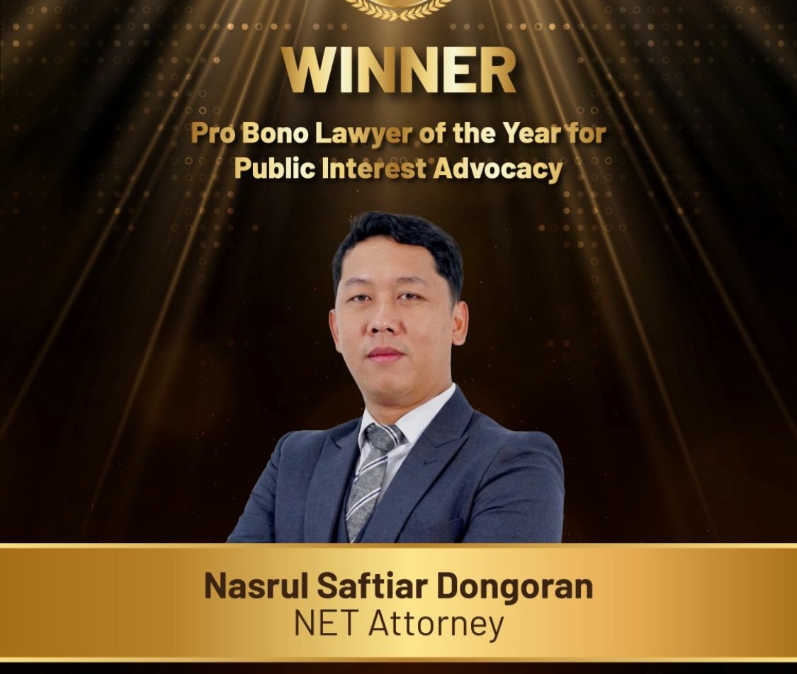 Dalam kategori Pro Bono Lawyer of The Year for Public Interest Advocacy, penghargaan diberikan kepada Nasrul Saftiar Dongoran, advokat NET Attorney. Penghargaan ini ditujukan bagi advokat yang menangani isu-isu strategis berdampak luas, seperti lingkungan dan infrastruktur.