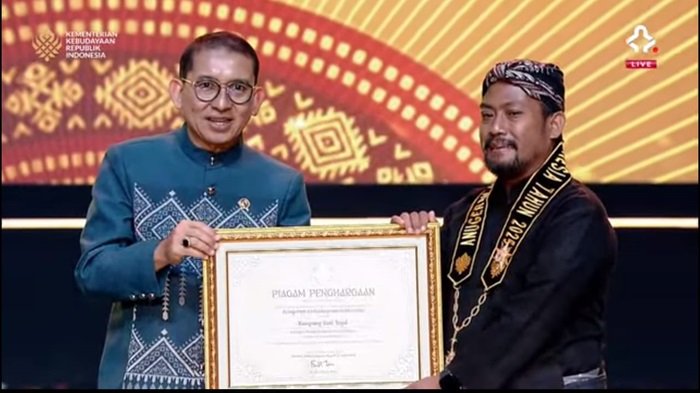 Penghargaan diserahkan langsung oleh Menteri Kebudayaan RI, Fadli Zon, kepada Ketua Kampung Seni Tegal, Seful Mu’min.