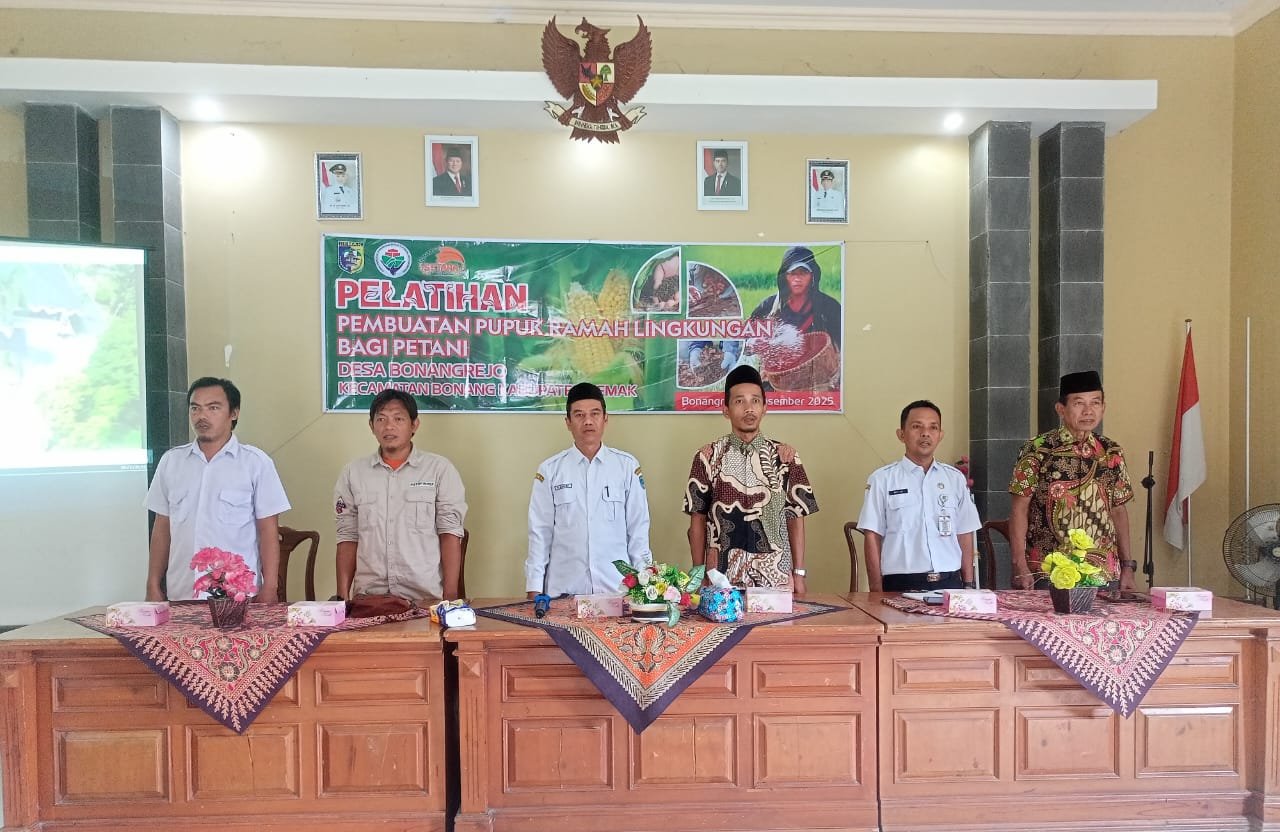 DEMAK, Jatengnews.id — Pemerintah Desa (Pemdes) Bonangrejo, Kecamatan Bonang, Kabupaten Demak menggelar pelatihan pembuatan pupuk ramah lingkungan bagi para petani. Kegiatan tersebut dilaksanakan di Aula Balai Desa Bonangrejo, Rabu (24/12/2025), sebagai upaya mencari solusi atas persoalan lahan pertanian yang terdampak rob.