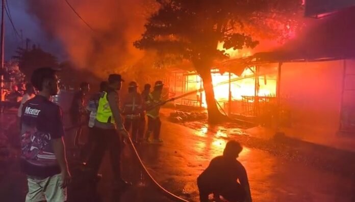 “Api sudah terlihat sejak sore, padahal kondisi sedang gerimis cukup deras,” ujar salah satu saksi mata di lokasi.