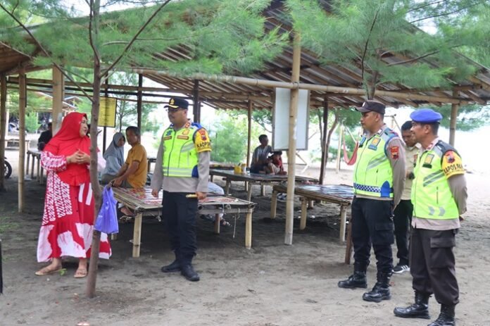 Kapolres melakukan pengecekan Pos Pengamanan (Pospam) sekaligus patroli menyusuri bibir pantai untuk memastikan situasi tetap aman dan kondusif. Dalam kesempatan itu, ia juga memberikan imbauan keselamatan kepada wisatawan.