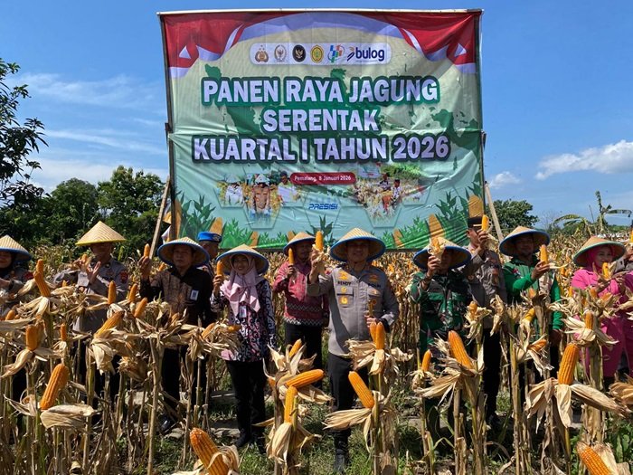 PEMALANG, Jatengnews.id – Polres Pemalang menggelar Panen Raya Jagung Kuartal I Tahun 2026 sebagai bentuk dukungan terhadap program ketahanan pangan nasional, di lahan seluas 1.700 meter persegi milik Kelompok Tani Sumber Mulya, Desa Banjarmulya, Kecamatan Pemalang, Kamis (8/1/2026).
