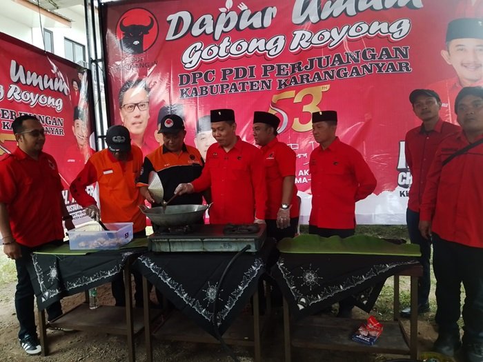 Dalam kegiatan tersebut, DPC PDI Perjuangan Karanganyar membuka dapur umum dan membagikan sekitar 600 nasi bungkus kepada warga dan pelaku UMKM di sepanjang jalan Matesih.