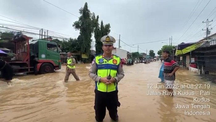 “Situasi arus lalu lintas masih padat merayap akibat luapan air di sekitar wilayah Ngembalrejo,” ujar AKP Irianto Senin (12/1/2026).
