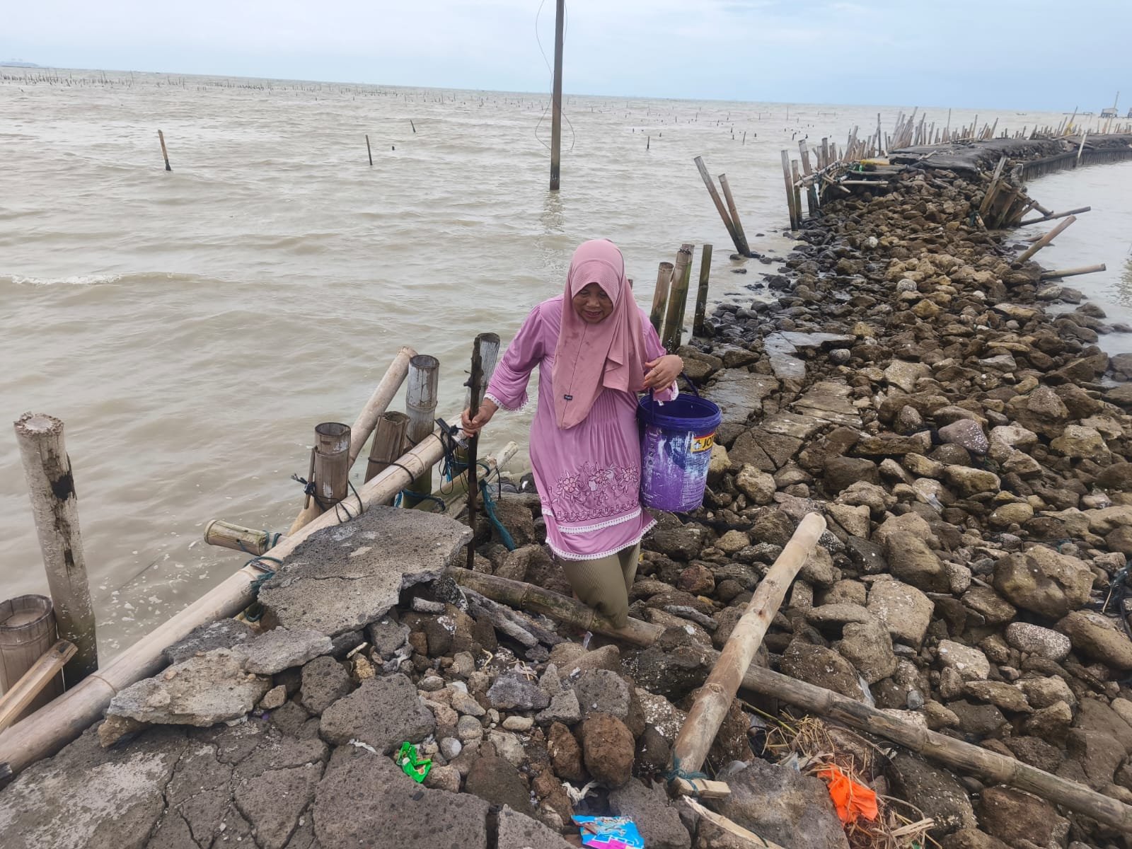 Warga Tambaksari Demak bertahan meski abrasi merusak akses jalan. Simak cerita Sokhib dan tantangannya sehari-hari.