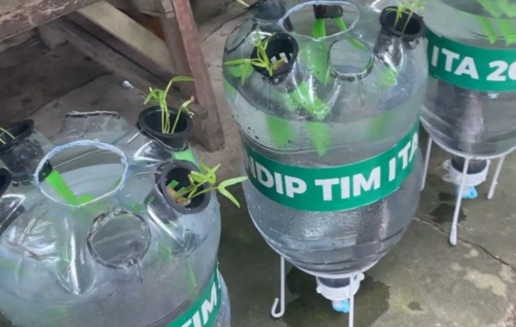 Mahasiswa KKN UNDIP Kenalkan Aquaponik Galon Bekas untuk Ketahanan Pangan di Desa Kacangan