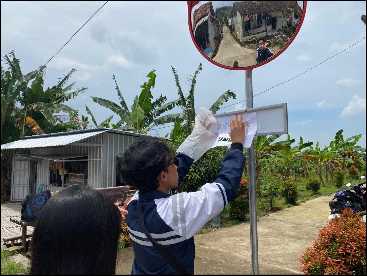 Tim kemudian memasang tiang penyangga, memasang kaca cembung, serta menyesuaikan sudut pandang agar berfungsi optimal.