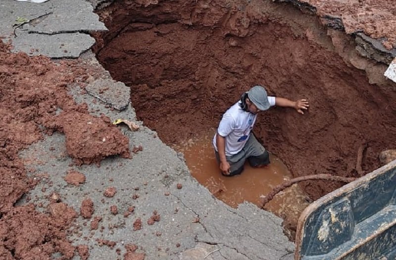 Ia menambahkan bahwa kedalaman saluran yang mencapai dua hingga tiga meter membuat kerusakan struktur tidak terpantau dari permukaan. Iswar menduga tutup saluran patah sehingga gerusan air menarik urugan tanah di atasnya jatuh ke bawah.
