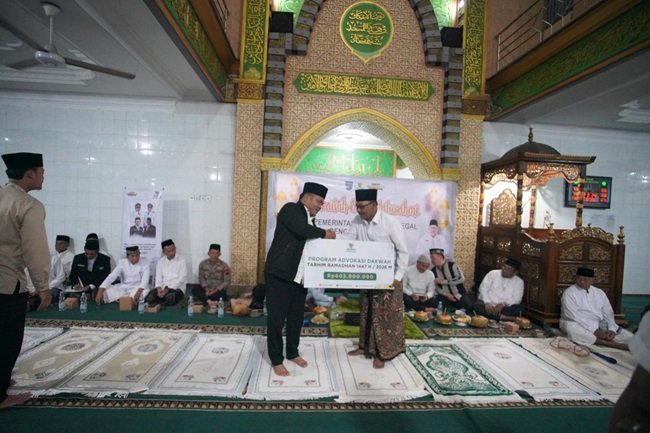 Pemkab Tegal menjalankan sejumlah program sosial-keagamaan, antara lain perlindungan BPJS Ketenagakerjaan bagi 1.500 marbot masjid di 277 desa serta hibah insentif bagi 9.318 pengajar keagamaan senilai Rp16 miliar.