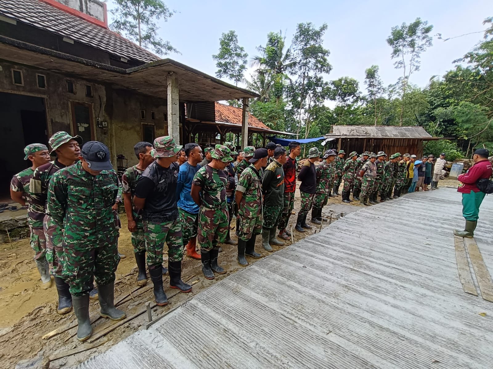 Barisan loreng dan pakaian sipil berdiri sejajar, tanpa sekat. Kebersamaan yang terjalin tampak nyata, mencerminkan kemanunggalan yang selama ini menjadi ruh program TNI Manunggal Membangun Desa (TMMD).