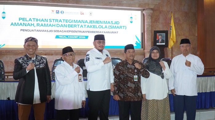 TEGAL, Jatengnews.id – Wali Kota Dedy Yon Supriyono menegaskan pentingnya menjadikan masjid sebagai pusat pemberdayaan umat saat membuka Pelatihan Strategi Manajemen Masjid Amanah, Ramah, dan Bertatakelola (SMART) di Gedung Adipura Balai Kota Tegal, Rabu (4/3/2026).