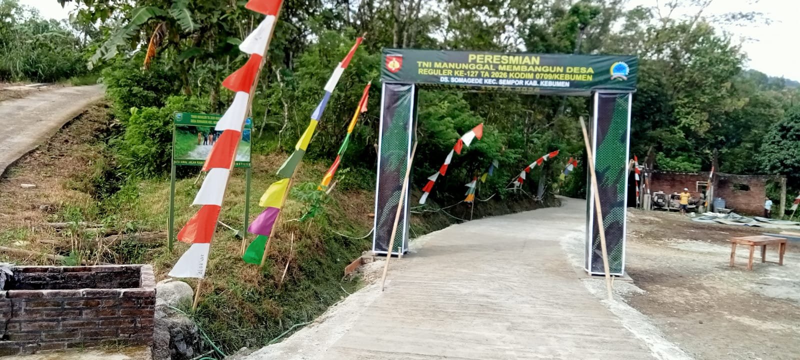 Tuntasnya pengerjaan tersebut ditandai dengan berdirinya gapura TMMD sebagai simbol selesainya sasaran fisik program di desa tersebut.