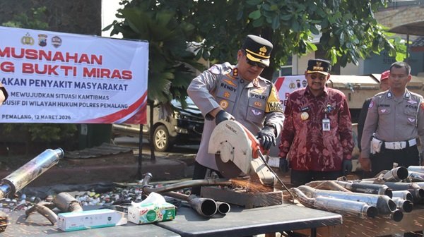 “Polres Pemalang mengamankan 1.980 botol miras berbagai jenis dan 75 knalpot brong yang kemudian dimusnahkan,” kata Rendy, Kamis (12/3/2026).