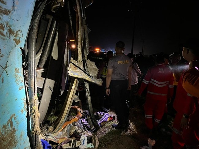 BREBES, Jatengnews.id – Kecelakaan tunggal bus pemudik terjadi di Tol Pejagan KM 259, Kabupaten Brebes, Selasa (18/3/2026) malam. Satu korban meninggal dunia berhasil dievakuasi tim SAR gabungan.