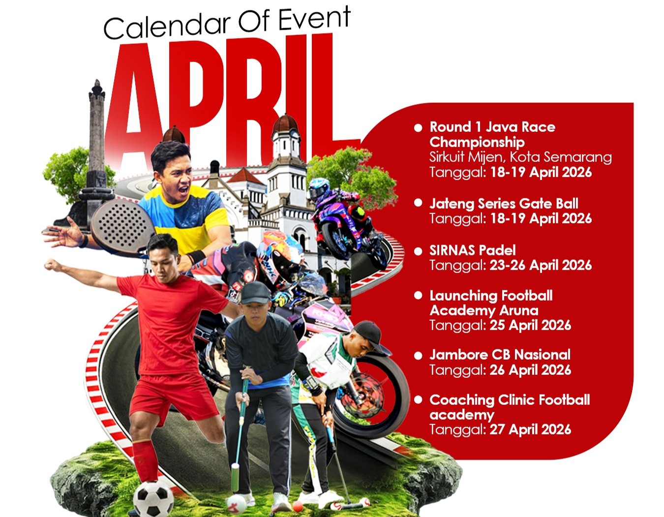 Dengan jadwal yang padat sepanjang April, Semarang diharapkan semakin dikenal sebagai destinasi utama kegiatan olahraga sekaligus ruang berkumpulnya berbagai komunitas dari seluruh Indonesia. (ADV)